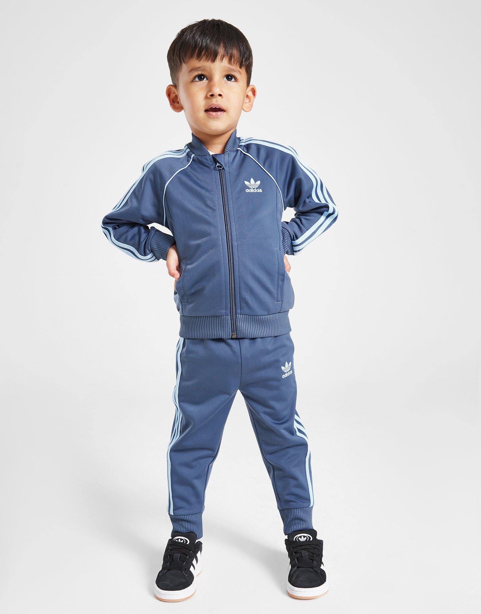Verleihe deinen Kids das komplette Outfit mit dem adidas Originals SST-Trainingsanzug für Babys. Dieses JD-exklusive Set in der Farbe Peloved Ink besteht aus glattem, leichtem Recycling-Polyester und bietet absoluten Komfort. Das langärmelige Trainingsoberteil verfügt über einen durchgehenden Reißverschluss mit Bomberkragen, während die passende Trainingshose einen elastische Bund für ein entspanntes Tragegefühl besitzt. Zudem sorgen die dehnbaren, gerippten Bündchen für eine sichere Passform, und abgerundet wird das Design durch die ikonischen 3-Streifen von adidas an den Seiten sowie das ikonische Trefoil-Logo auf Brust und Oberschenkel. Waschmaschinengeeignet. JP1852