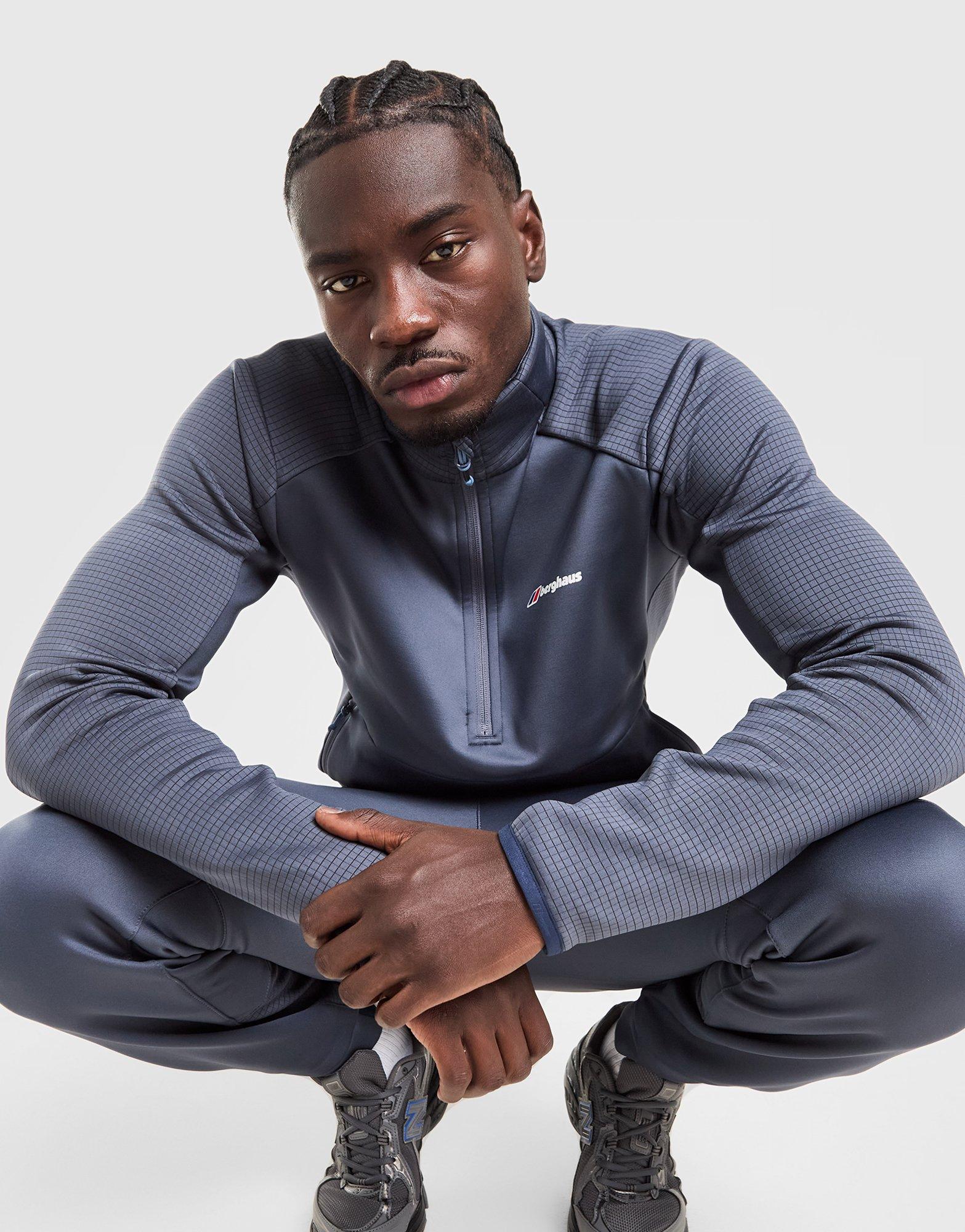 Perfekt für jedes Wetter. Das Berghaus Sidley 1/2 Zip Top für Herren ist bereit, wenn du es bist. Dieses JD-exklusive Oberteil ist aus einem weichen, dehnbaren Strickfleece gefertigt. Es verfügt über einen Halbreißverschluss und elastische Bündchen. Die Reißverschlusstaschen bieten Platz für deine Utensilien, während das typische Berghaus-Logo dem Design noch den letzten Feinschliff verpasst. Waschmaschinengeeignet. Unser Model ist 1,85 groß und trägt Größe M.