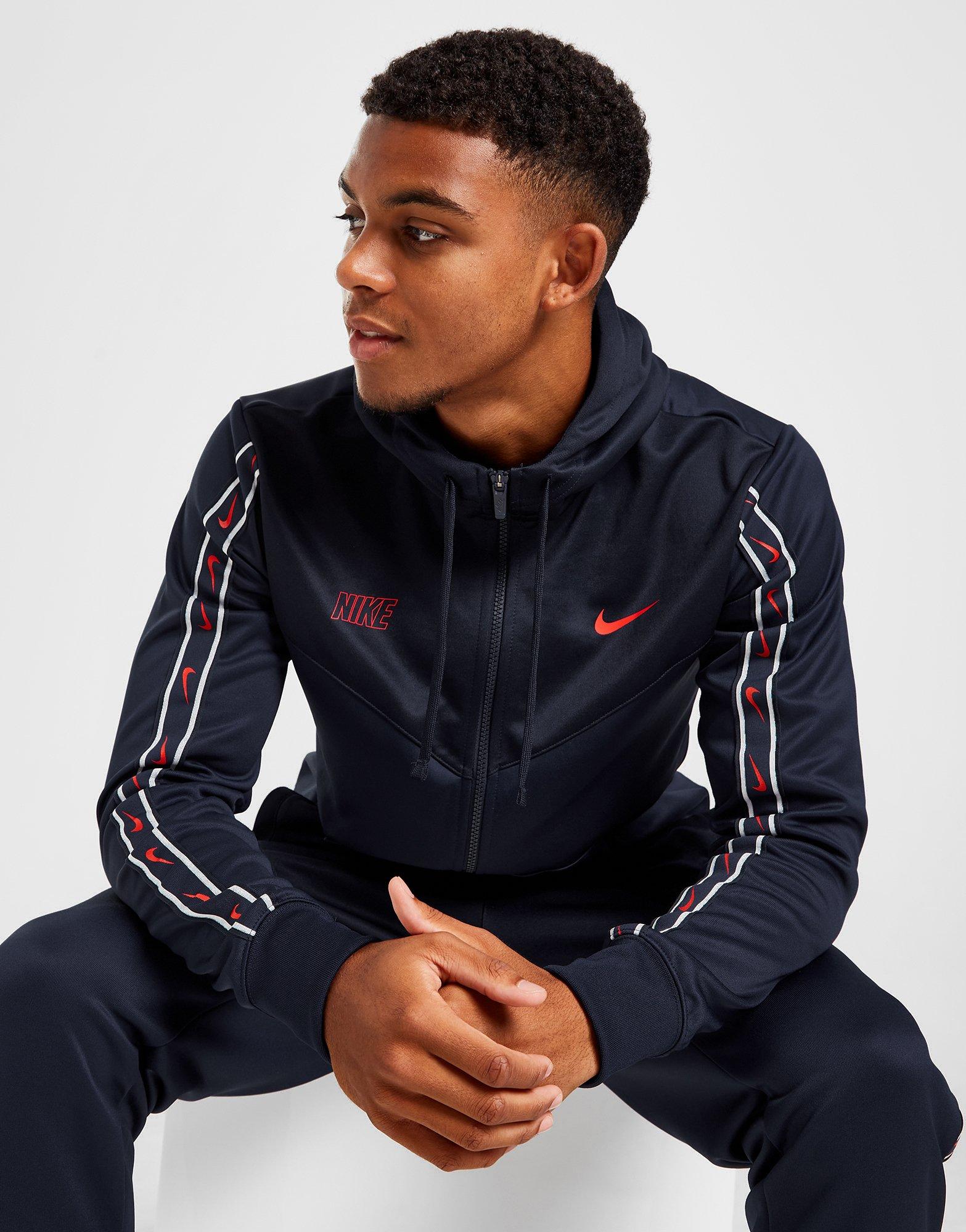 Machen Sie es sich mit diesem Repeat Poly Full Zip Hoodie für Herren von Nike im Retro-Stil gemütlich. Dieser normal geschnittene Hoodie in der Farbe Midnight Navy ist aus einem glatten Poly-Strickstoff für maximalen Komfort gefertigt. Es verfügt über einen durchgehenden Reißverschluss mit verstellbarer Kapuze, gerippte Abschlüsse und Fronttaschen zur Aufbewahrung Ihrer Essentials. Mit aufgeklebtem Swoosh-Branding an den Ärmeln wird dieser Hoodie mit Nike-Branding auf der Brust abgerundet. Waschmaschinenfest. | Unser Model ist 5'11" groß, hat einen Brustumfang von 38" und trägt Größe M.