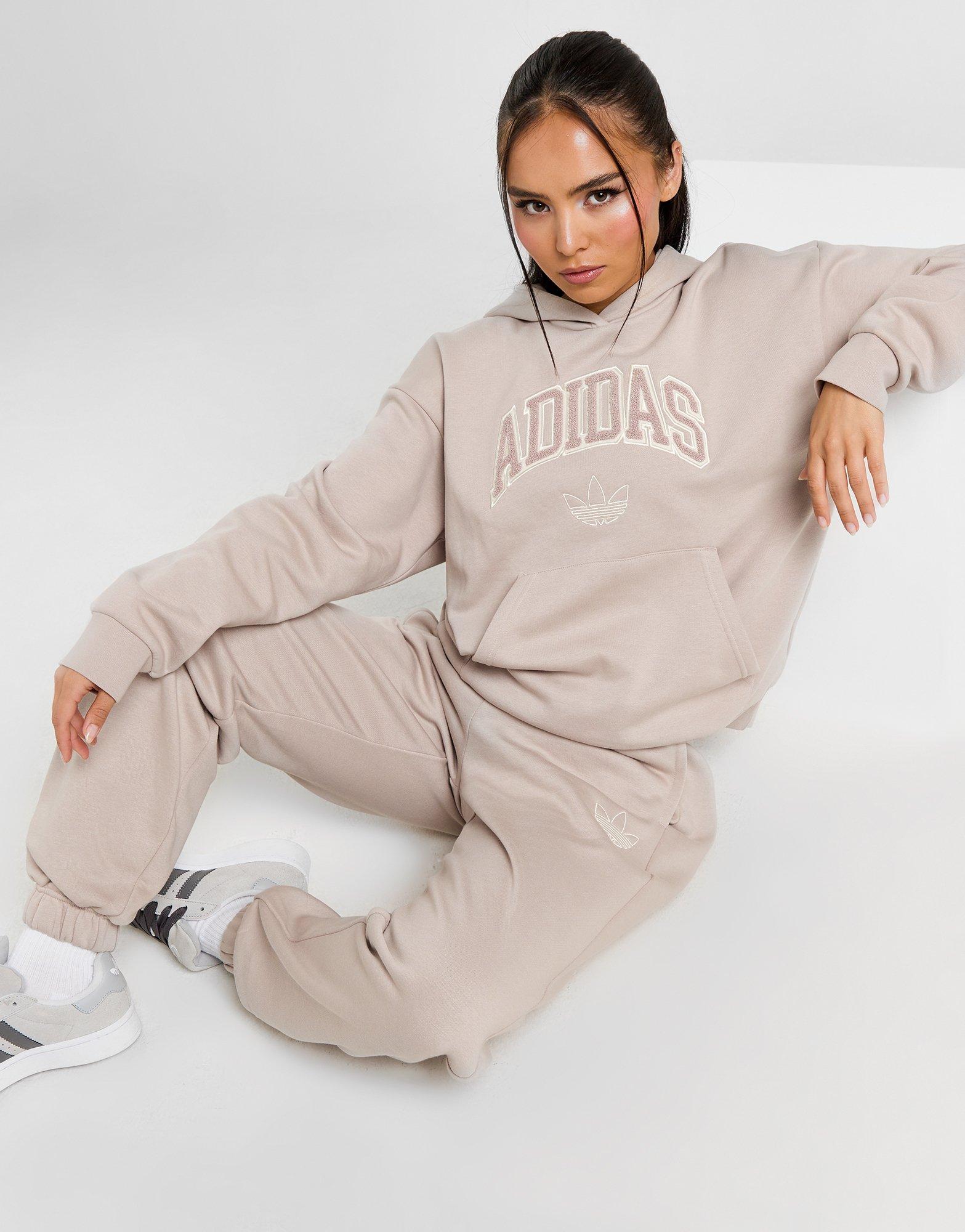Mit diesem Cosy Logo Hoodie für Damen von adidas Originals verleihst du deinem Chill-Day-Look das gewisse Extra. Dieser locker sitzende Hoodie in der Farbe Wonder Taupe besteht aus einer weichen Mischung aus Baumwolle und recyceltem Polyfleece für dauerhaften Tragekomfort. Er verfügt über eine feste Kapuze und lange Ärmel mit überschnittenen Schultern für einen lässigen, gemütlichen Schutz. Er hat eine Kängurutasche auf der Vorderseite, in der du deine wichtigsten Sachen verstauen kannst, während dehnbare Rippbündchen für eine sichere Passform sorgen. Abgerundet wird der Look durch ein flauschiges Bouclé-Logo von adidas Originals auf der Brust. Maschinenwaschbar. | Unser Model trägt Größe S.