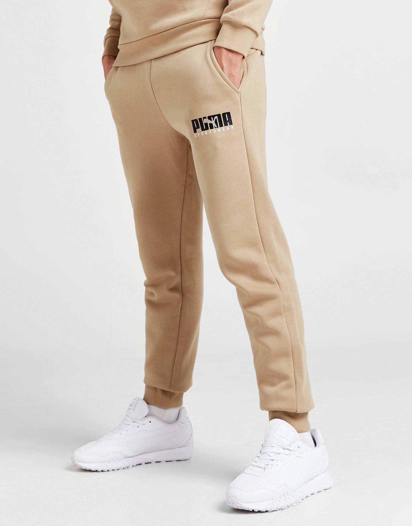 Upgrade deinen Chillout-Style mit der PUMA Core Sportswear Jogginghose für Herren. Diese JD-exklusive Hose in der Farbe Stone besteht aus kuscheligem Fleece, das teilweise recyceltes Polyester enthält. Sie verfügt über einen elastischen Bund mit Kordelzug für eine verstellbare Passform, während die Seitentaschen eine einfache Aufbewahrung ermöglichen. Die gerippten Bündchen stabilisieren die und das PUMA-Logo am Hosenbein verleiht dem Design noch den letzten Feinschliff. Waschmaschinengeeignet. Unser Model ist 1,85 m groß und trägt Größe M.