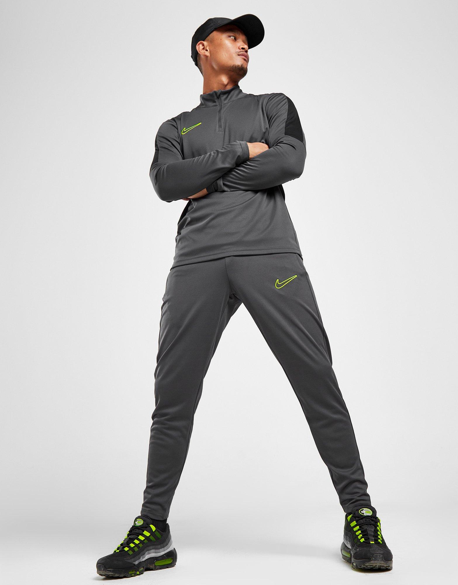 Aktualisieren Sie Ihre Spielfeld-Essentials mit dieser Academy Essential Track Pants für Herren von Nike. Diese Trainingshose in der Farbe Anthrazit mit Volt-Details besteht aus glattem, leichtem Polyestergewebe für dauerhaften Komfort. Sie sind mit schweißableitender Dri-FIT-Technologie ausgestattet, um Sie kühl zu halten, und verfügen über einen elastischen Bund mit Kordelzug zur Anpassung der Passform. Sie haben schmale, stromlinienförmige Beine mit Knöchelbündchen mit Reißverschluss zum einfachen An- und Ausziehen über Stiefeln und Seitentaschen mit Reißverschluss zur sicheren Aufbewahrung. Abgerundet mit dem ikonischen Swoosh-Logo am Oberschenkel. Waschmaschinenfest. | Unser Model ist 1,80 m groß und trägt Größe M.