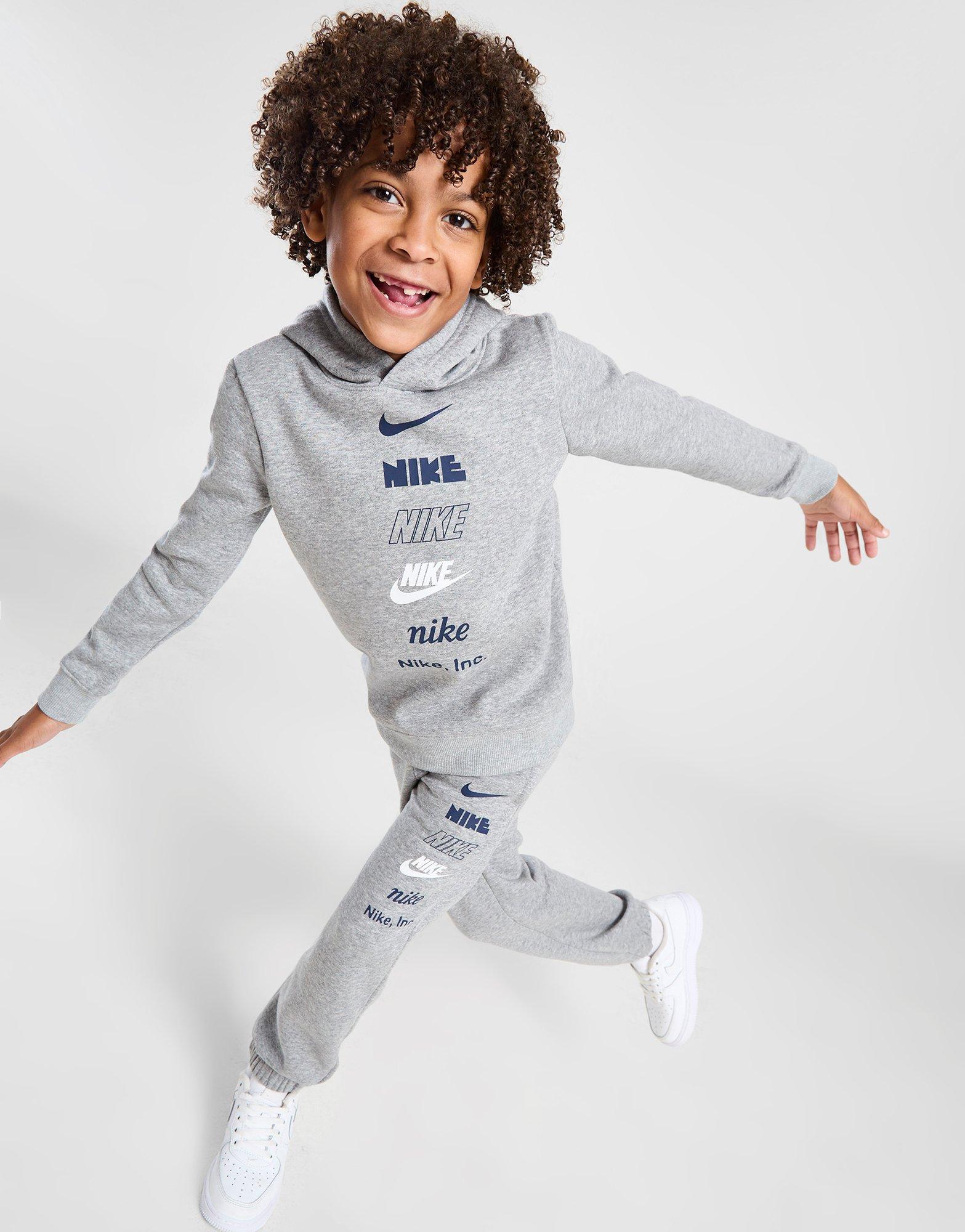 Verleihe deinen Kids neuen Style mit dem Nike Multi Logo Trainingsanzug für Kleinkinder. Dieses JD-exklusive Set in Grau besteht aus einem weichen Baumwoll-Fleece und bietet absoluten Komfort im Alltag. Der langärmlign Pullover besitzt eine feste Kapuze für kuscheligen Schutz, während die passende Jogginghose über einen elastischen Bund verfügt. Die dehnbaren, gerippten Bündchen sorgen für eine sichere Passform und die mehrfachen Nike-Logos befinden sich auf der Brust und am Oberschenkel. Waschmaschinengeeignet.