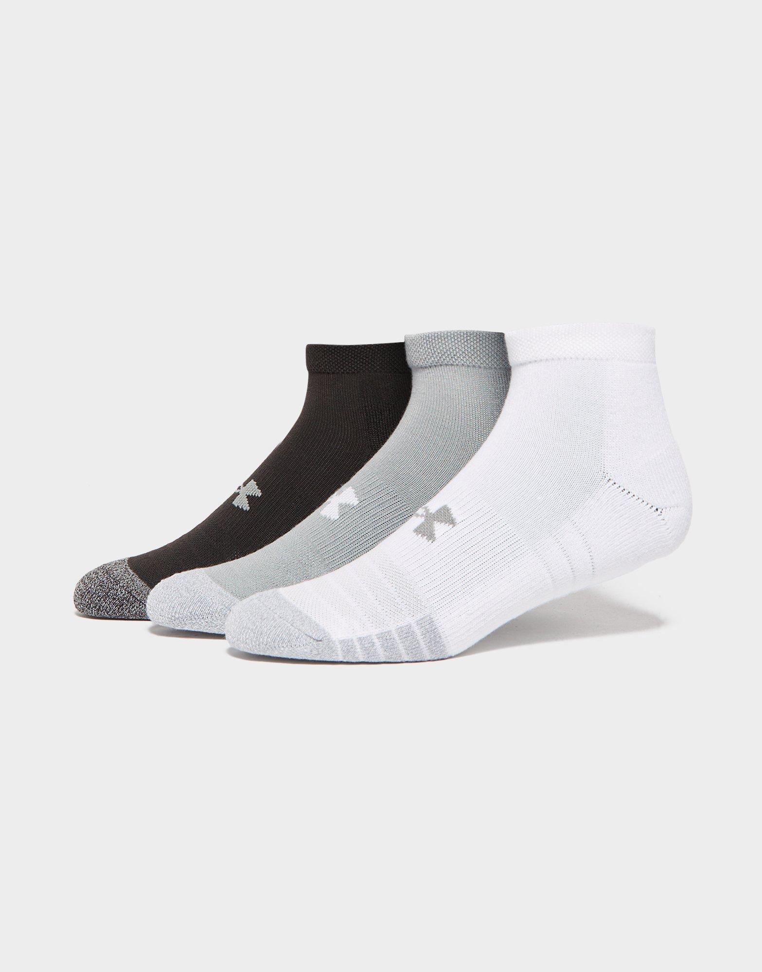 Bring deinen Komfort aufs nächste Level mit diesem 3er-Pack HeatGear Tech Crew Socken von Under Armour. Farblich in Schwarz/Grau und Weiß gehalten, sind die Socken aus einem stretchy Polyester Material gefertigt und mit der legendären HeatGear Technologie versehen, die den Schweiß von der Haut ableitet. Die Socken verfügen über eine Polsterung, die für ausgezeichneten Komfort sorgt und sind zum Abschluss mit dem unverkennbaren Under Armour Logo an der Ferse versehen.