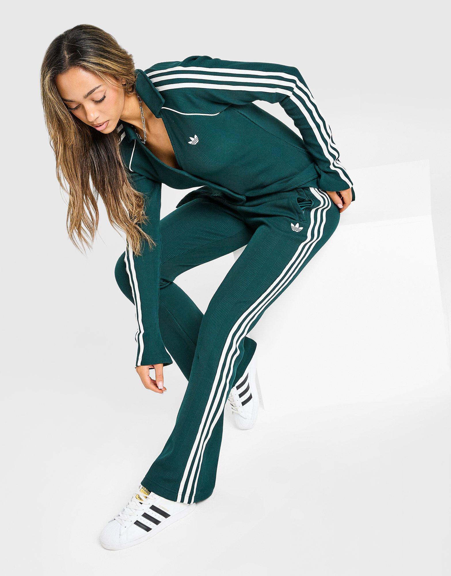 Bring ein neues Highlight in deinen Look mit der adidas Originals Waffle Flared Jogginghose für Damen. Diese Hose ist in der Farbe Aurora Ivy gehalten und besteht aus superweichem, dehnbarem Stoff mit Waffle-Struktur. Oben Slim-Fit. Unten ausgestellte Hosenbeine. Der elastische Bund sorgt für sicheren Halt, während Reißverschlusstaschen Platz für deine Sachen bieten. Das klassische Logo von adidas Originals verleiht dem Design noch den letzten Feinschliff. Unser Model ist 1,73 m groß und trägt Größe S. KS7794