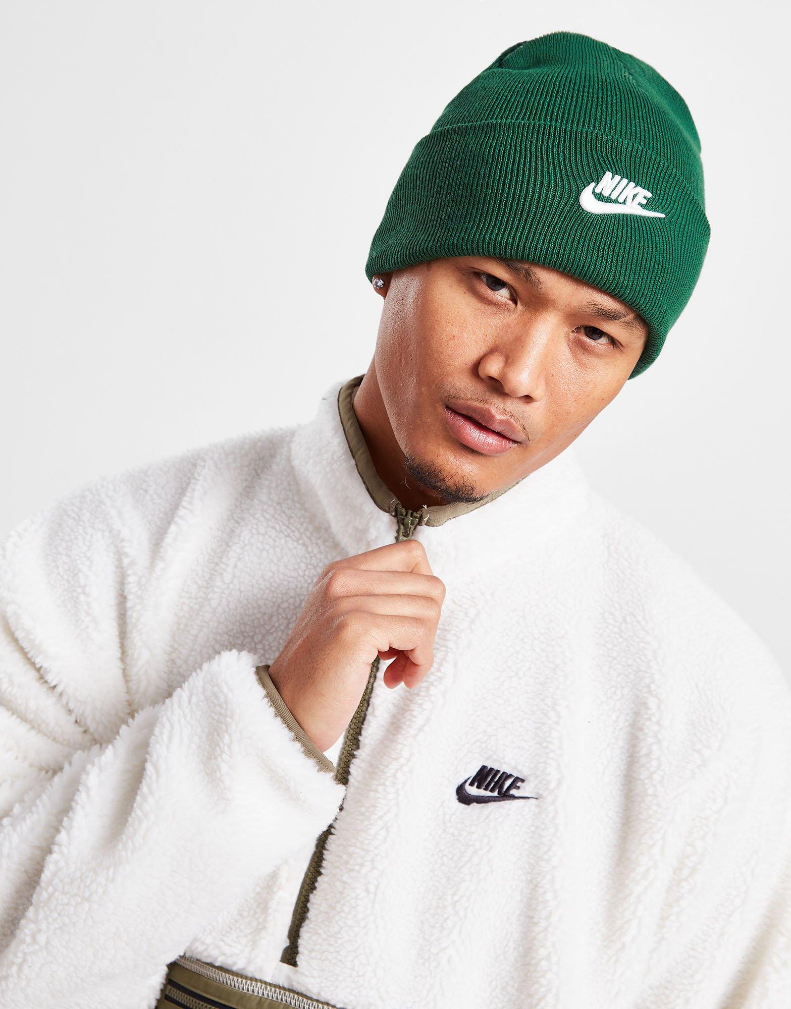 Mit der Utility Beanie Mütze von Nike bleibst du an kalten Tagen warm. Diese Mütze ist in der Farbe Gorge Green gehalten und ist aus einer kuscheligen Stoffmischung gefertigt, die zu mindestens 75% aus recyceltem Polyester besteht. Sie verfügt über ein umgeschlagenes Bündchen und bietet absoluten Tragekomfort, während ein weißes Futura-Logo von Nike das Design abrundet. Für Handwäsche geeignet.