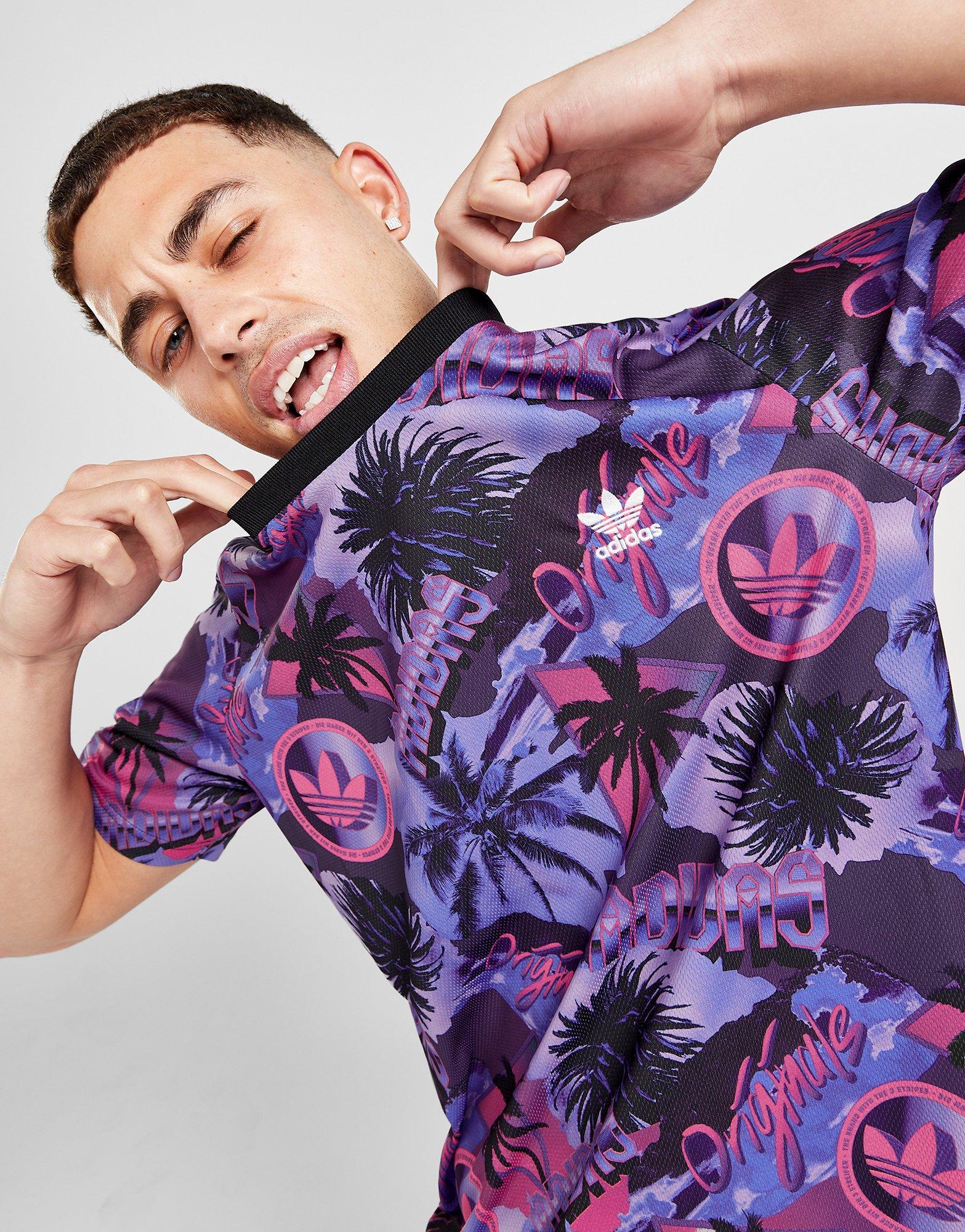 Holen Sie sich Sommerstimmung mit diesem Summer Sticker All Over Print T-Shirt für Herren von adidas Originals. Dieses normal geschnittene T-Shirt in der Farbe Lila besteht aus glattem, leichtem recyceltem Polygewebe für dauerhaften Komfort. Es verfügt über einen gerippten Rundhalsausschnitt und kurze Ärmel für einen klassischen Schnitt und ist mit einem auffälligen, retroinspirierten Aufkleberdruck mit einem charakteristischen Trefoil-Logo auf der Brust versehen. Waschmaschinenfest. | Unser Model ist 1,75 m groß, hat einen Brustumfang von 96 cm und trägt Größe M. | IP5539