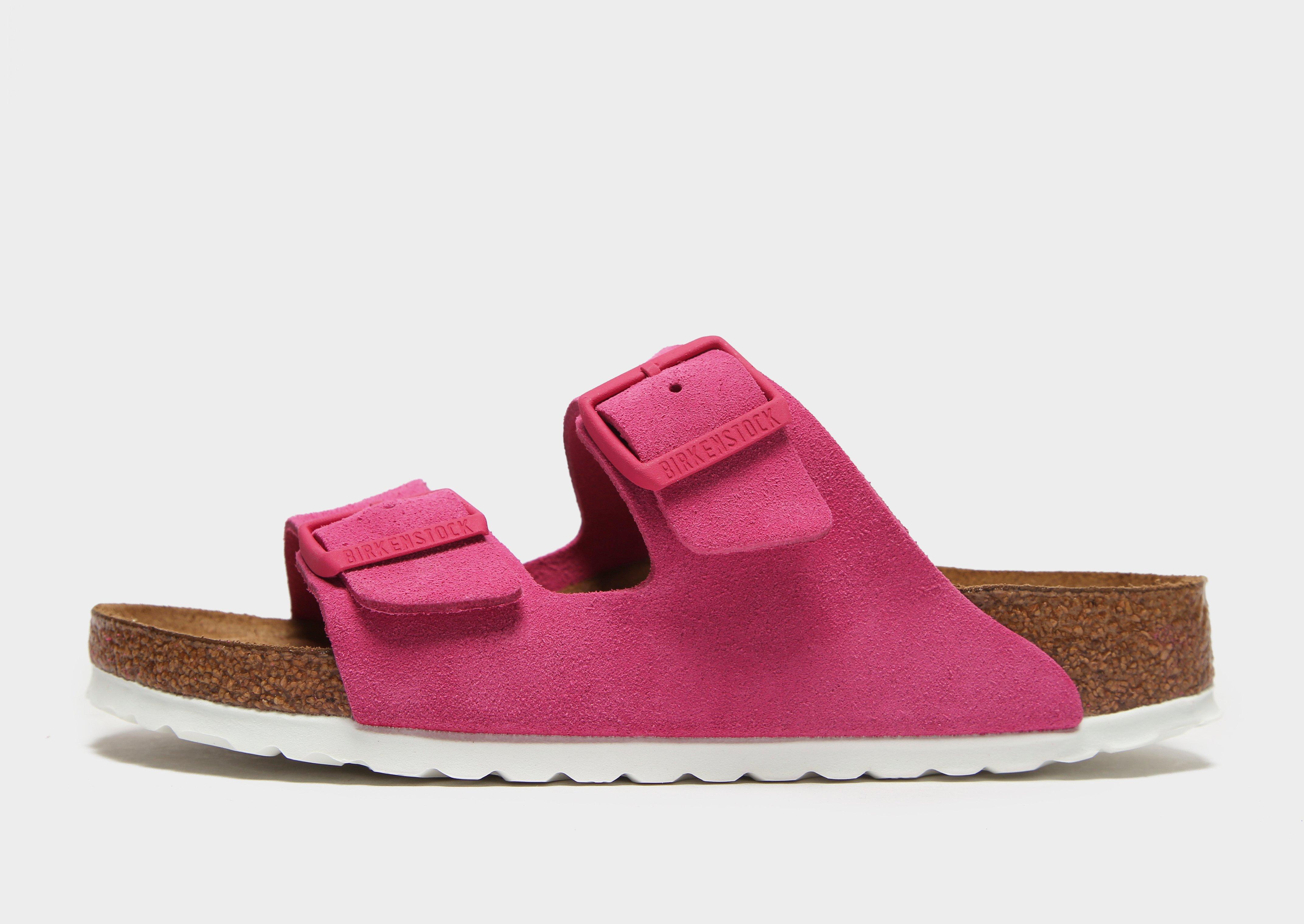 Mach dich bereit für den Sommer mit diesen Arizona Sandalen für Damen von Birkenstock. Diese charakteristischen Sandalen in Fuchsia-Pink haben ein Obermaterial aus Premium-Wildleder in einem klassischen Zwei-Riemen-Design. Sie haben ein hochwertiges Wildlederfutter und verfügen über verstellbare Fußriemen mit Schnallen für individuellen Komfort. Unter den Füßen passt sich ein konturiertes Kork-Fußbett an deinen Fuß an, während die EVA-Zwischensohle für ein ultra-gepolstertes Tragegefühl sorgt. Mit einem griffigen Profil für die notwendige Traktion sind diese Sandalen mit dem charakteristischen Birkenstock-Branding versehen.