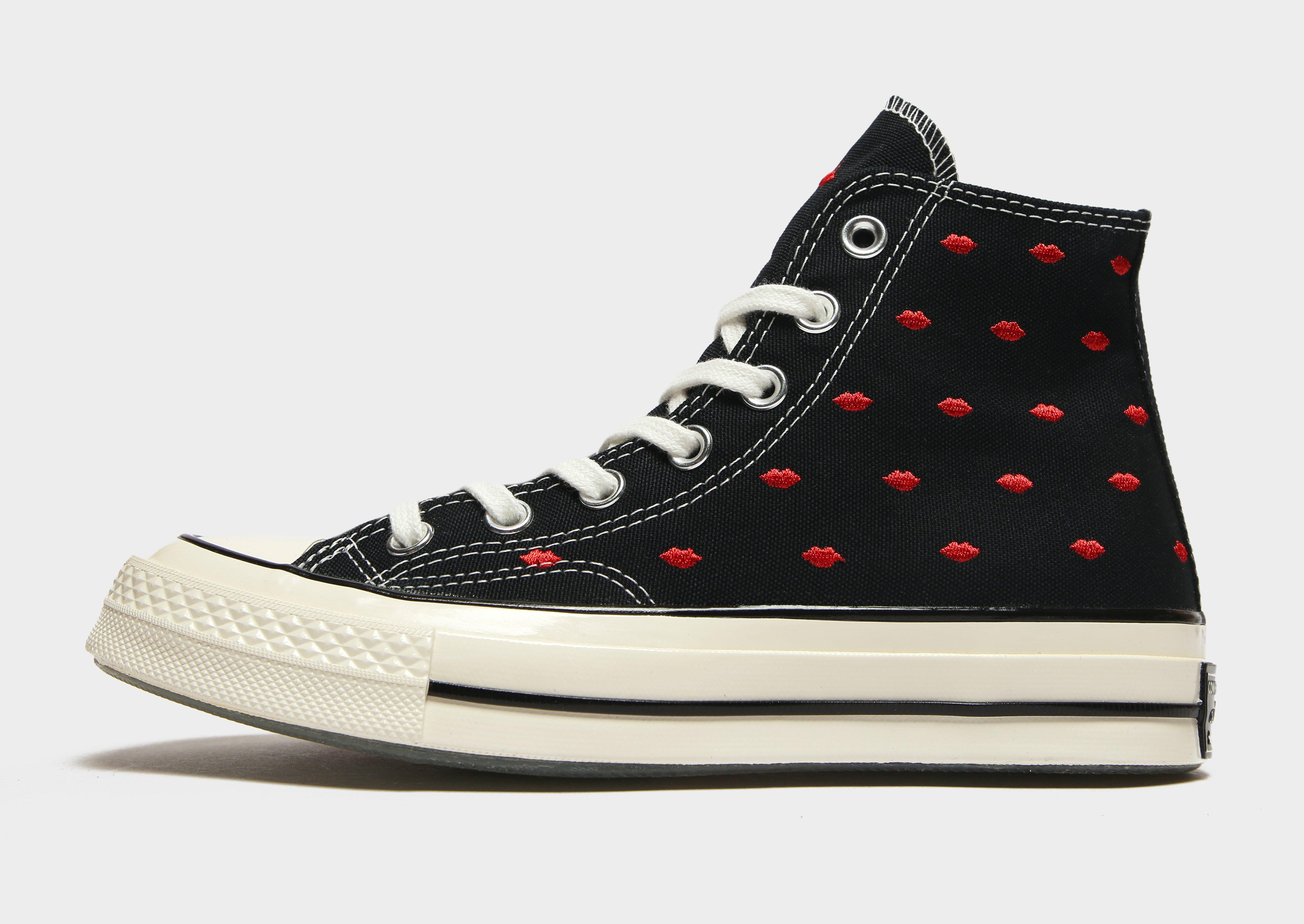 Verleihe deinem Sneaker-Spiel einen Klassiker mit diesen All Star 1970s High Valentine's Day Sneakern für Damen von Converse. Diese High-Top-Sneaker sind in der Farbe Schwarz erhältlich und besteht aus einem leichten, aber strapazierfähigen Canvas-Obermaterial für Komfort und einen kultigen Look. Sie verfügen über einen Schnürverschluss für einen sicheren Sitz, eine OrthoLite-Zwischensohle für gedämpften Komfort bei jedem Schritt und eine durchgehende, von Liebe inspirierte Stickerei. Mit einer Gummiaußensohle, die dir auf der Straße Halt gibt, sind sie mit dem Converse-Branding an Knöchel und Ferse versehen.