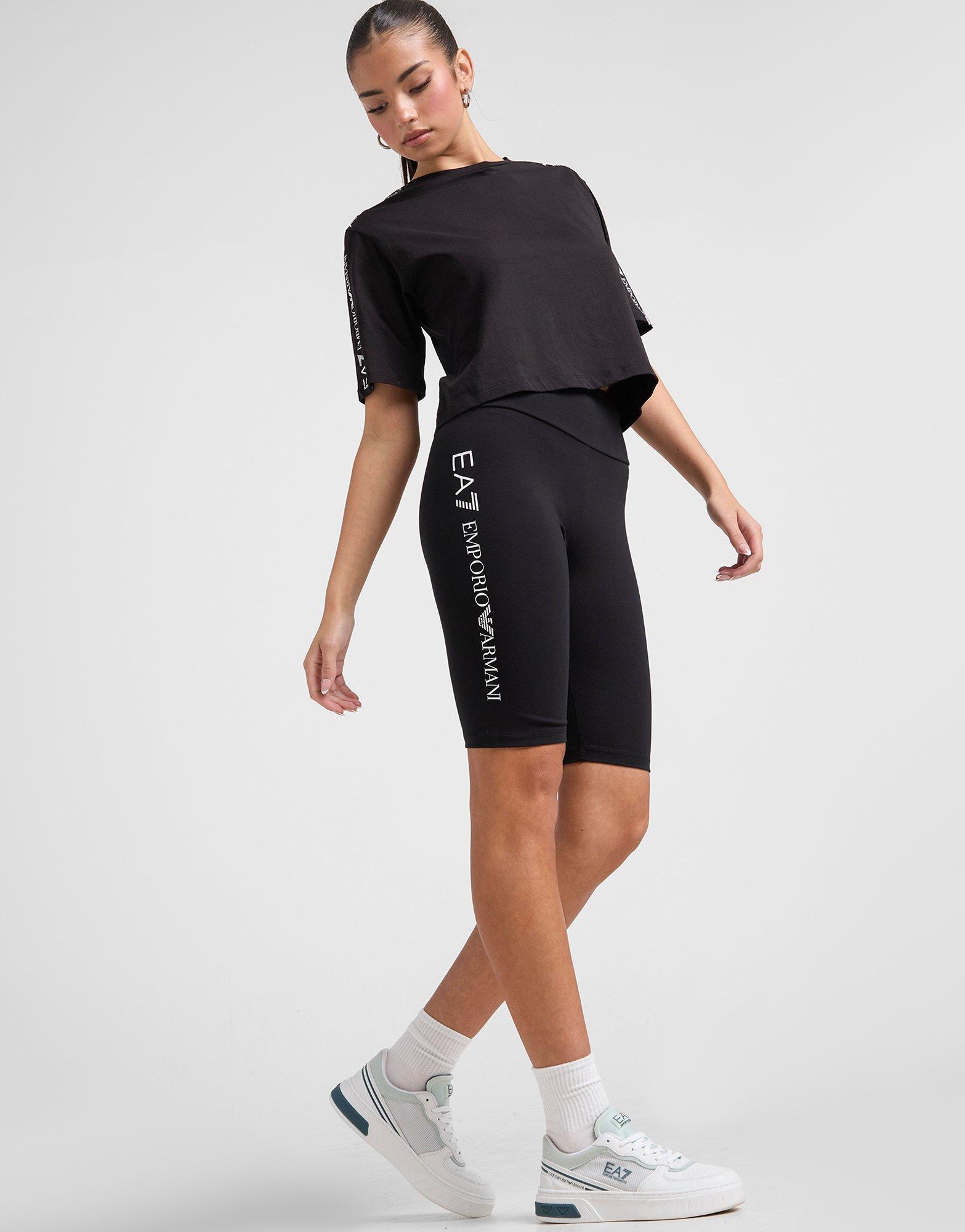 Die Logo Cycle Shorts für Damen von EA7 Emporio Armani sind ein echter Hingucker. Die eng anliegenden Shorts in der Farbe Schwarz sind aus weicher, dehnbarer Baumwolle gefertigt und bieten maximalen Komfort. Der hochgezogene, elastische Bund ist mit einem Kordelzug versehen, um die Passform zu regulieren. Das EA7-Logo am Oberschenkel rundet das Modell ab. Waschmaschinengeeignet. Unser Model ist 1,68 m groß und trägt Größe S.