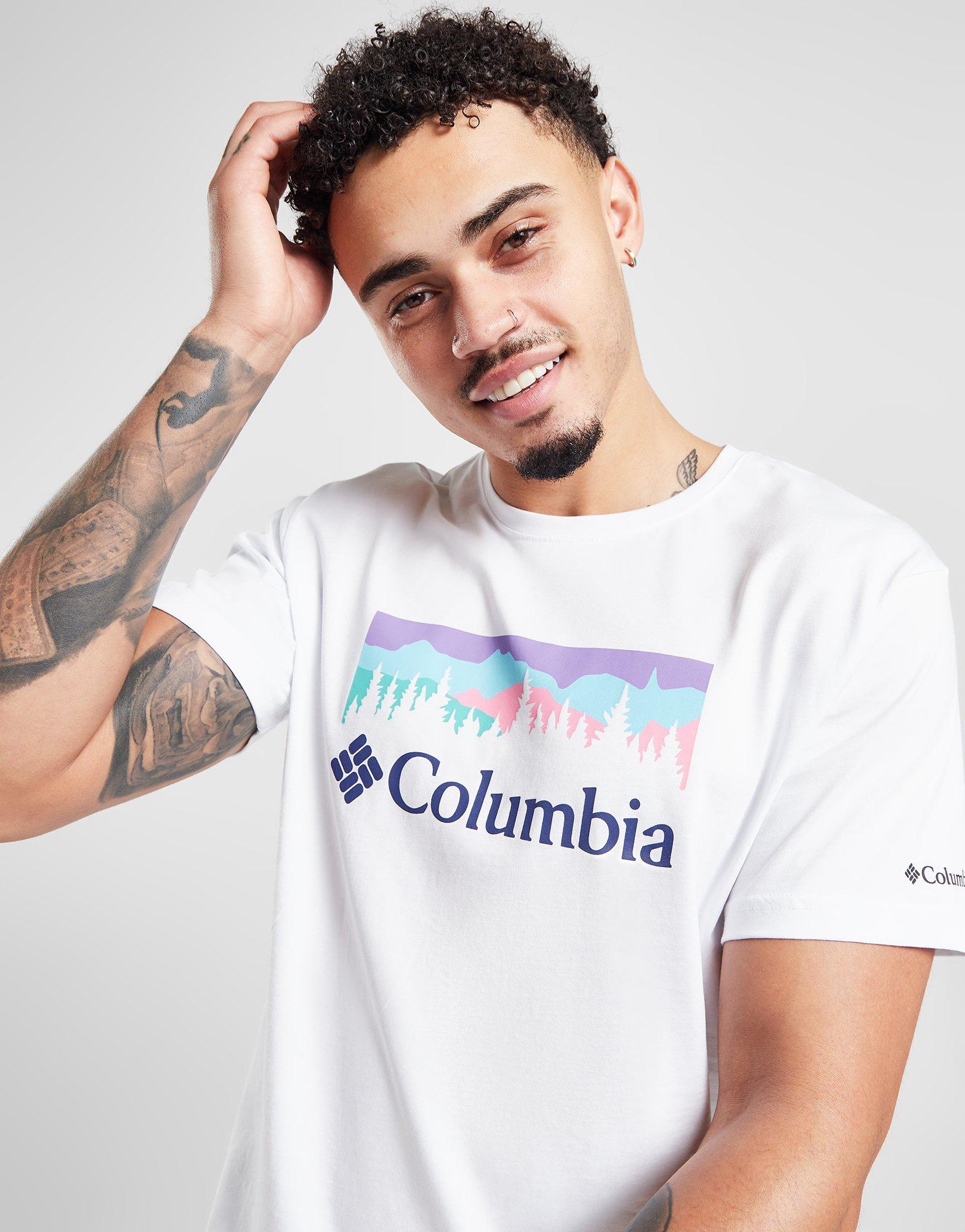 Nehmen Sie das Abenteuer in diesem Amble Forest T-Shirt für Männer von Columbia an. Dieses T-Shirt mit normaler Passform ist in der Farbe Weiß erhältlich und besteht aus weicher, leichter Baumwolle für wesentlichen Komfort. Es verfügt über einen gerippten Rundhalsausschnitt und kurze Ärmel für einen klassischen Schnitt und ist mit einer auffälligen Grafik des Columbia-Logos auf der Brust versehen. Abgemeldet mit dem ikonischen Wortmarken-Logo am Ärmel. Waschmaschinenfest. | Unser Model ist 6 Fuß 1 Zoll groß, hat einen Brustumfang von 30 Zoll und trägt Größe M.