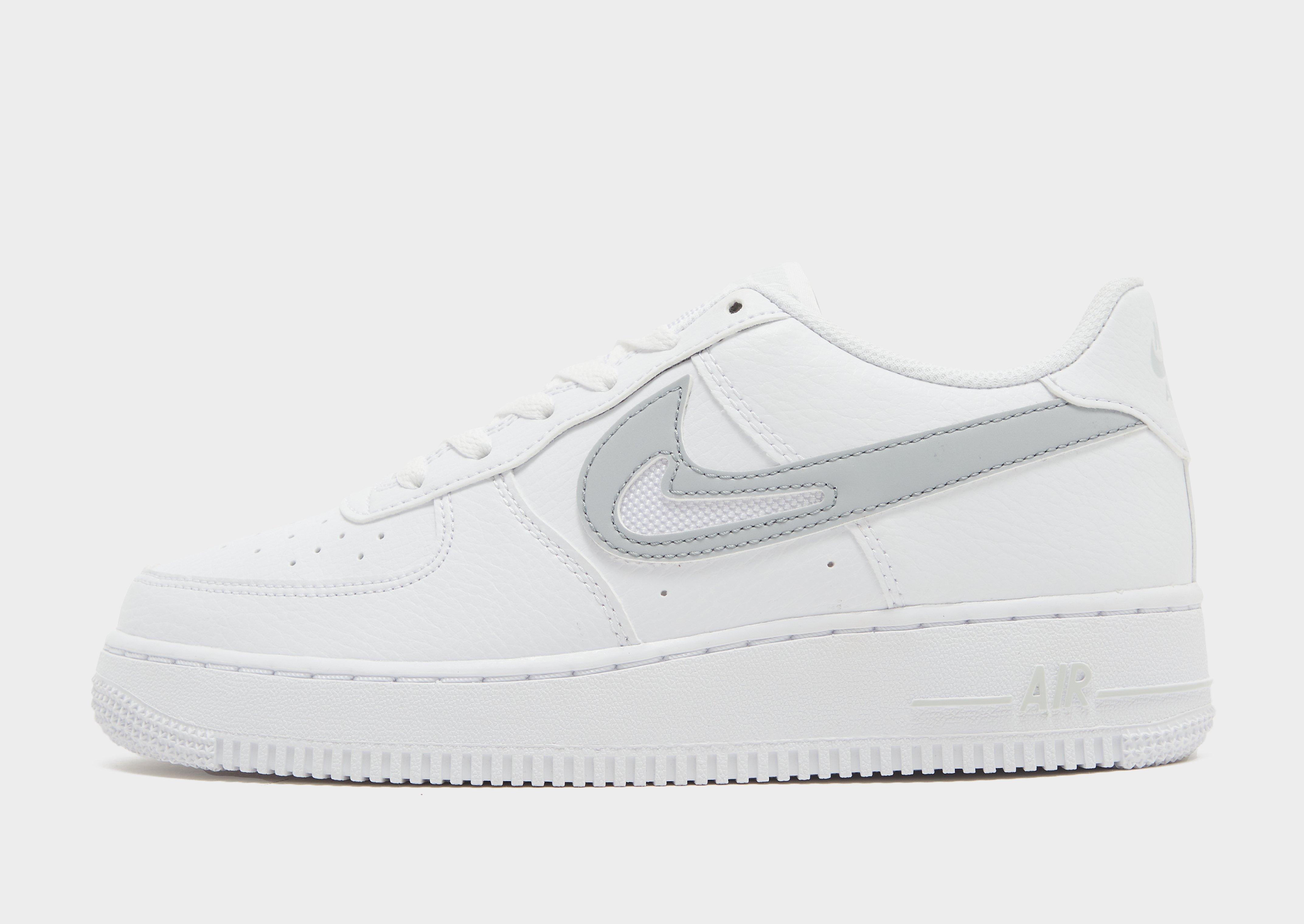 Gehen Sie klassisch auf Ihre Füße mit diesen Air Force 1 Low-Sneakern für Kinder von Nike. Diese exklusiven JD-Sneakers in den Farben Weiß und Photon Dust sind aus glattem, strapazierfähigem Kunstleder für dauerhaften Tragekomfort gefertigt. Sie verfügen über einen Schnürverschluss, der Sie festhält, und einen gepolsterten, tief ausgeschnittenen Kragen für Halt. Unter den Füßen sitzen sie auf einer dicken Schaumstoff-Zwischensohle für ein geschmeidiges Laufgefühl und eine griffige Gummi-Außensohle für absolute Traktion. Abgerundet mit dem charakteristischen Swoosh-Branding.