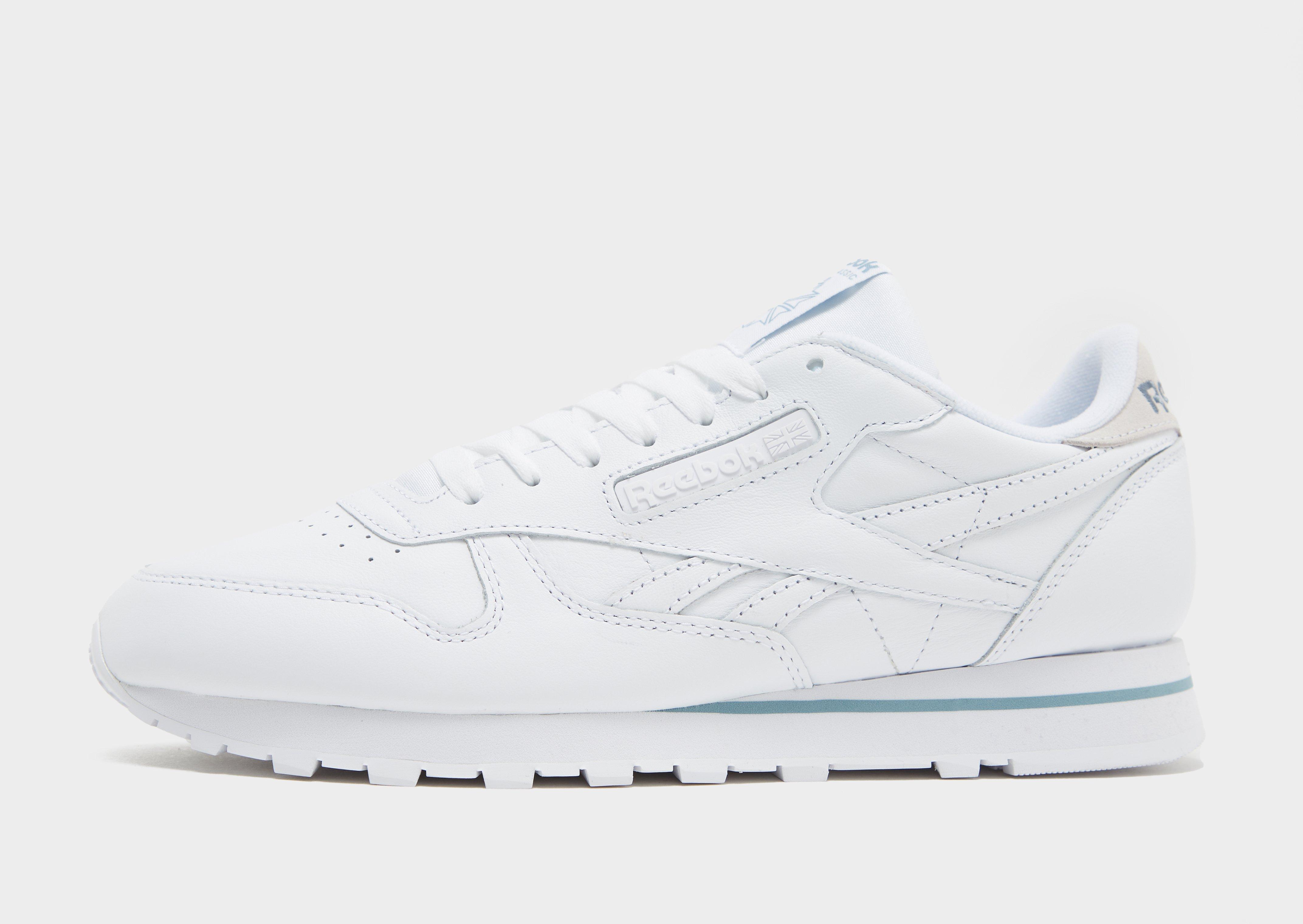 Gehen Sie mit diesen Classic Leather-Turnschuhen für Herren von Reebok in die alte Schule. Diese JD-Exklusivmodelle in Weiß haben ein Obermaterial aus geschichtetem Leder mit genähten Details zur Unterstützung. Sie verfügen über einen gepolsterten Knöchelkragen und einen farblich passenden Schnürverschluss über einer EVA-Zwischensohle für ein sanftes Laufgefühl. Mit einer strapazierfähigen Gummilaufsohle sind sie mit dem klassischen Reebok-Branding versehen.